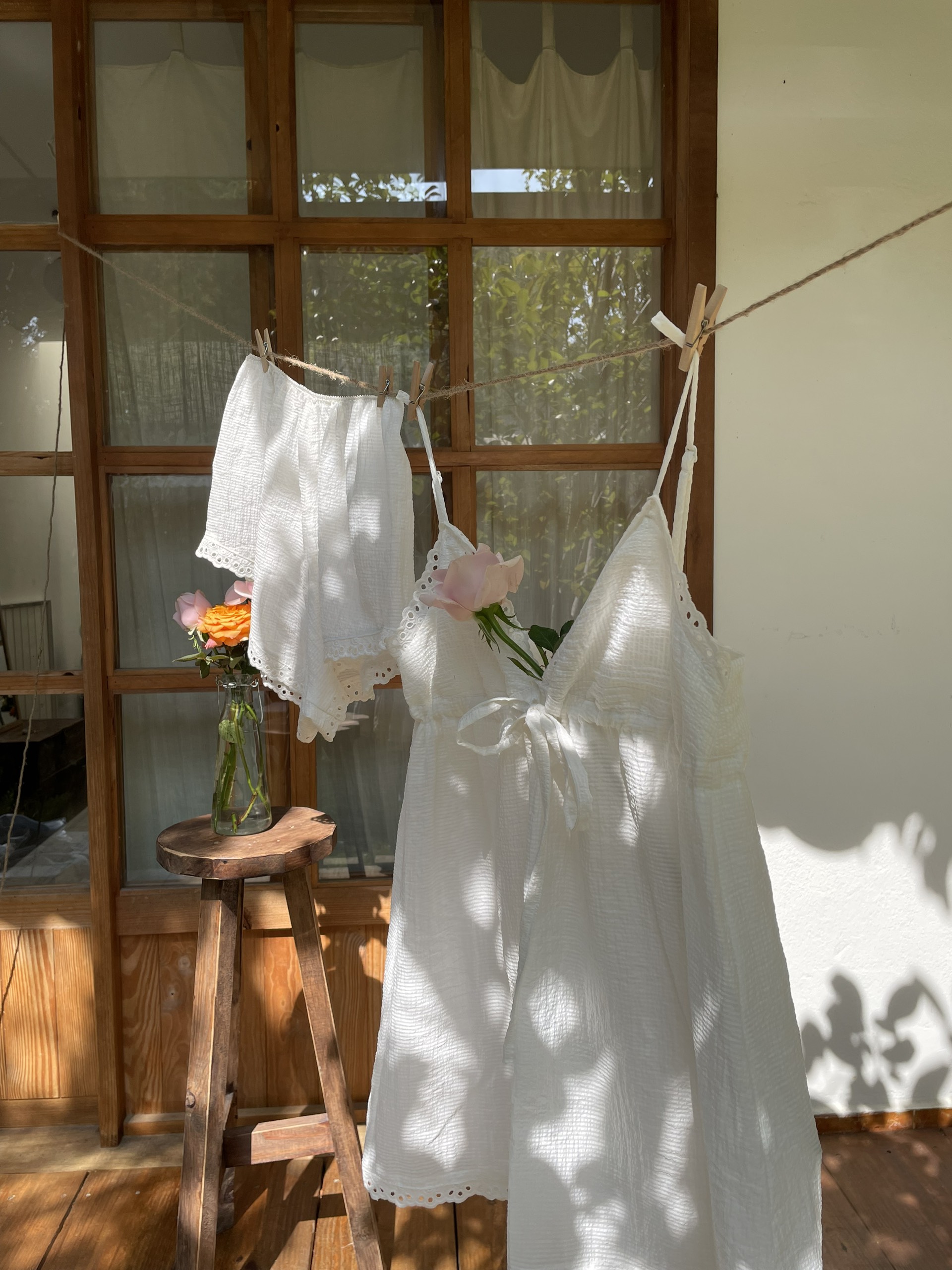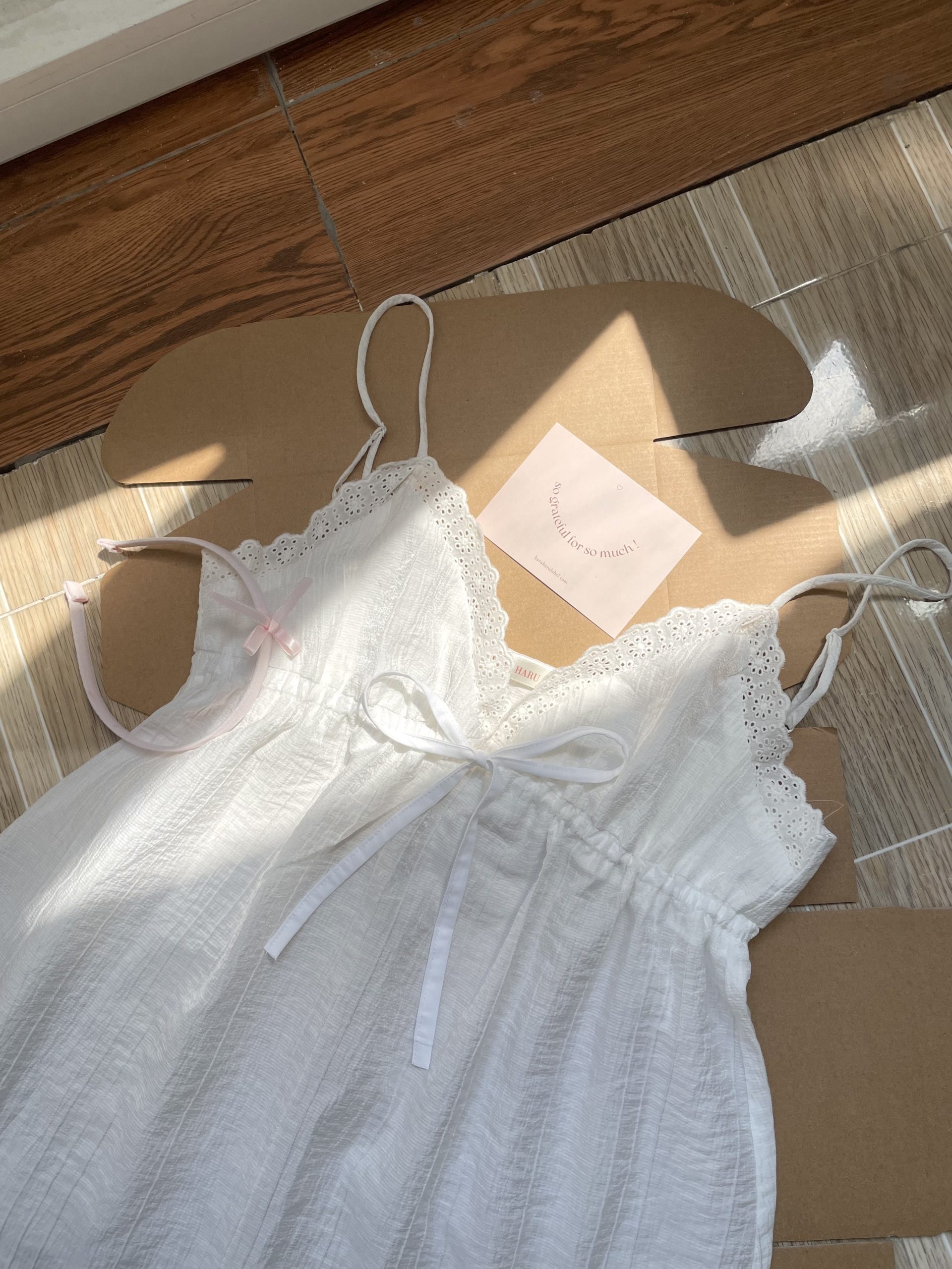 Suzy | Đầm hai dây babydoll trắng hoa | haruharu.label