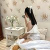 Vivian | Pyjamas đồ mặc ở nhà sọc trắng xanh phối ren | haruharu.label