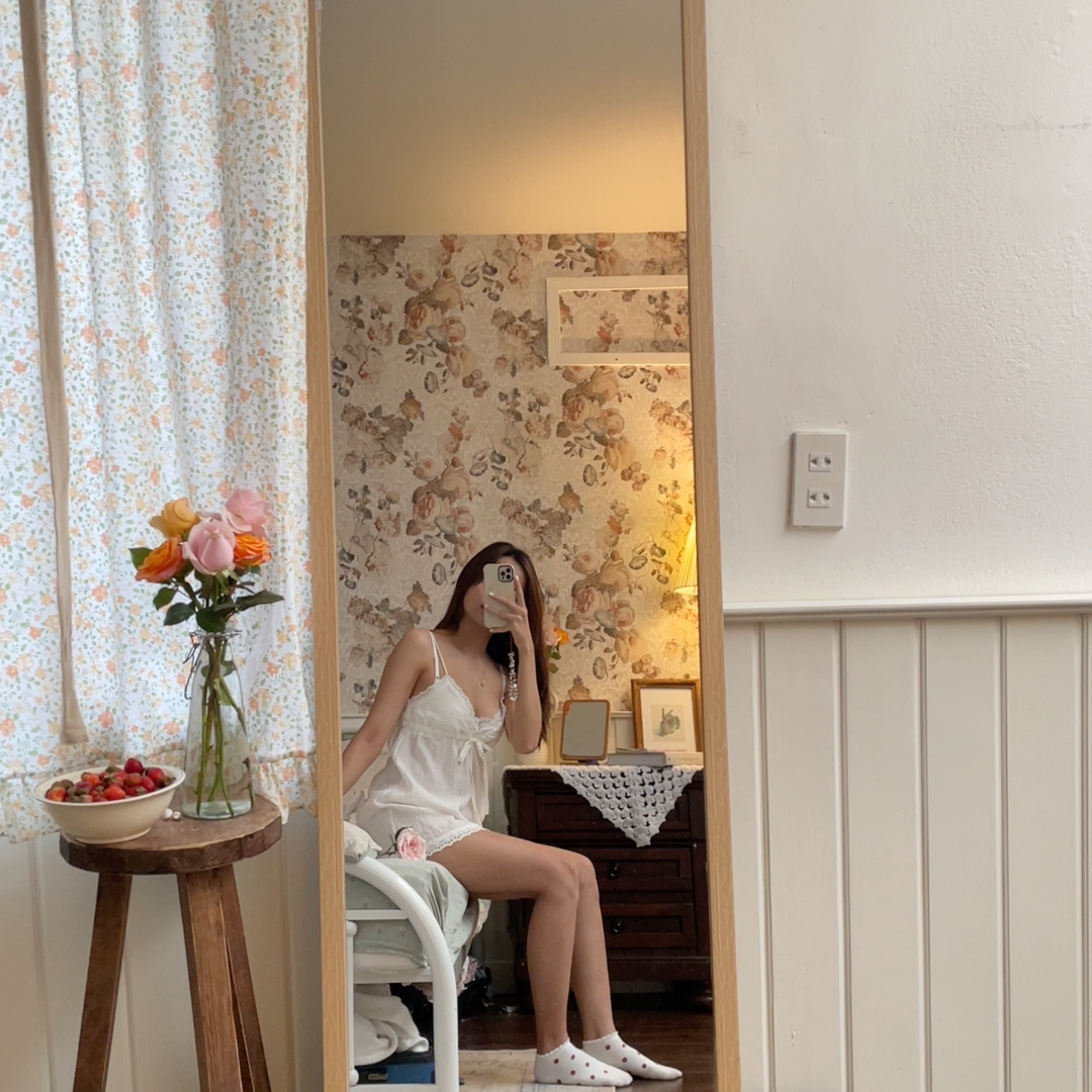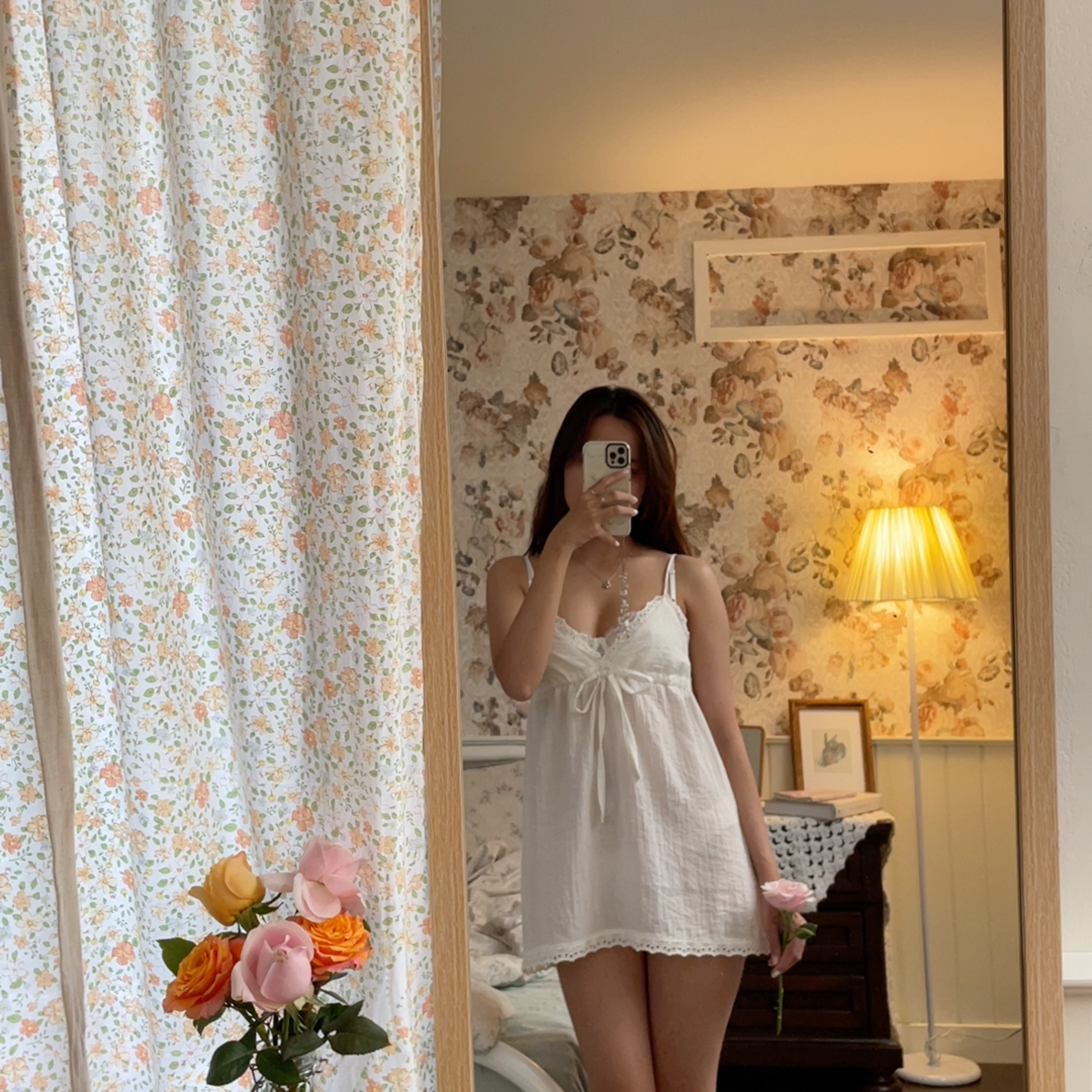 Harmonie | Đầm lụa hai dây trắng hoa | haruharu.label